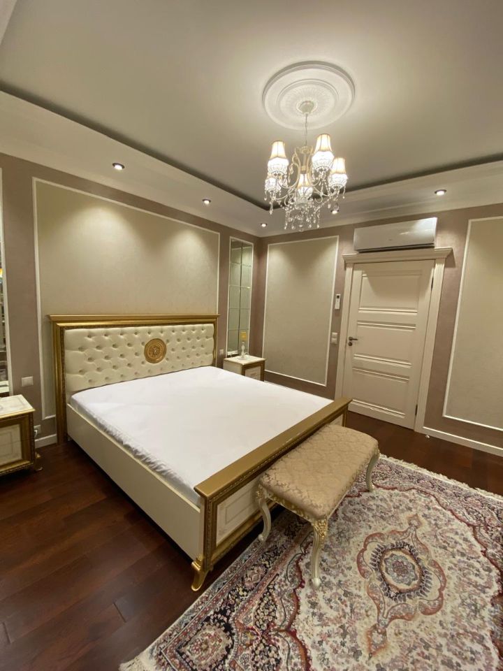 ЖК Мосфильмовский. Отличная 5-комнатная квартира в элитном доме. Спален: 4, санузлов: 2. Общая площадь: 160 кв.м. Потолки 2.9 м. Ремонт в уникальном дизайнерском стиле. Квартира полностью с мебелью. Огороженная, охраняемая территория. Подземный паркинг, машиноместо оплачивается отдельно - 15 тыс. Панорамный вид из окна. Есть гардеробная комната. В наличии: посудомоечная машина, холодильник, приточно-вытяжная система вентиляции и кондиционирования, кондиционер, душевая кабина, ванна, стиральная машина, подогрев полов. Телевизор, высокоскоростной интернет. Можно с детьми.