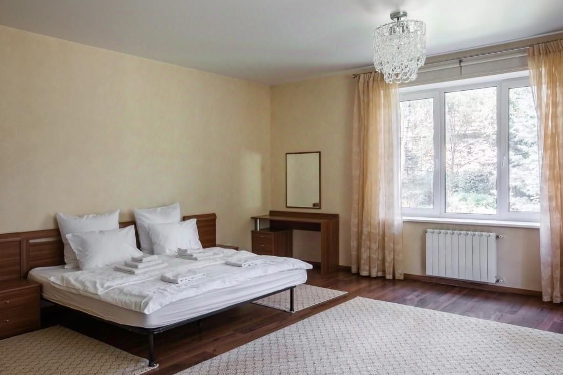 — Кто арендодатель? Мы, HUSE, — сервис краткосрочной аренды загородных домов с принципом работы как для себя Мы профессионалы в своем деле и очень стараемся, чтобы гостям у нас было хорошо. Нам можно доверять: все объекты соответствуют фото и можно посмотреть их заранее! Мы — прямой арендодатель, не риелторы и не агенты. У нас классные дома, где есть всё необходимое для беззаботного отдыха. — Подробнее про этот домик: Сдается на короткий срок целый комплекс на ухоженном огромном участке с крытым бассейном, сауной, бильярдом и террасой. Идеально подходит для спокойного отдыха на природе. Вместимость: Днём размещаем до 35 гостей, ночью — до 27 Планировка: 1. Основной дом • 1 этаж: Большая гостинная с плазмой, оборудованная всем необходимым кухня с обеденной зоной, три спальни и санузел • 2 этаж: 2 уютные спальни и санузел. • 3 этаж: 2 спальни и санузел 2. Банный комплекс • 1 этаж: огромный подогреваемый бассейн с финской сауной, гостинная, кухонная зона, 2 уютные спальни и 2 санузла • 2 этаж: зона отдыха (настольный теннис - для игр с друзьями) 3. Дом с бильярдом • 1 этаж: гараж • 2 этаж: зона отдыха с бильярдом 4. Чайный домик с камином 5. Кострище • Территория: на участке ландшафтный дизайн: деревья, кусты, цветы и газон. Теплая беседка с мангальной зоной и терраса с летней мебелью. — Сколько стоит аренда? Будни 27.000₽ Пятница 45.000₽ Суббота 55.000₽ Полные выходные 85.000₽ Депозит 32.000₽ ВАЖНО С 01.05.2026-30.09.2026 Пятница 58.000 Суббота 72.000 Полные выходные 110.000 Сервисный сбор — 6 000 ₽ Уборка — стоимость варьируется от 3 500/ 5000/8 500 ₽ и зависит от того, насколько чисто вы оставите дом Доп. услуги: Ранний заезд - 9.000₽* * При условии заезда в 14:00 и пользования только первым этажом + уборка продлевается до 18:00 Полотенца — 500 ₽ за набор из трёх полотенец и коврика для ног Питомец — дополнительная плата в размере 5 000 ₽ по согласованию Дрова — 1 800 ₽ за связку и растопку Доп. уборка во время проживания — 5 000 ₽ в час помощь горничных в качестве официантов — 5 000 ₽ в час помощь с приготовлением еды — 5 000 ₽ в час Какие правила? При бронировании обязательно заключаем договор аренды. Заезд с 16:00, выезд до 12:00. Очень важно не шуметь и не мешать соседям после 21:00 Наши дома предназначены для того, чтобы классно провести время с близкими людьми, а не для шумных безбашенных вечеринок. Возможна оплата по безналу, работаем с юрлицами Для чего арендуют наши дома? Один из самых популярных поводов — день рождения и другие семейные праздники. Также дом часто арендуют для отдыха с друзьями и близкими. К нам приезжают для работы на стратегические сессии или проводят корпоративы (по запросу предоставляем магнитные доски, принтер и флипчарт).