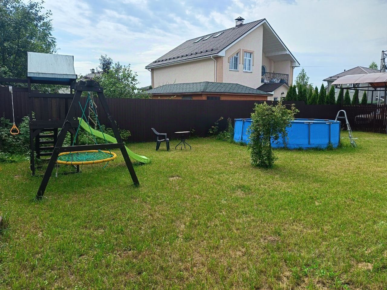 Сдается коттедж в 25 км от МКАД по Киевскому шоссе, поселение Первомайское, деревня Уварово. Лесная, спокойная локация в часе езды от Москвы. Участок: 15 соток с огороженной территорией, парковкой, детской площадкой, беседкой и мангальной зоной. Площадь дома: 500 м² на трех уровнях (цокольный, первый, второй этажи). Вместимость и размещение: Оптимально: до 12 взрослых гостей. Дополнительно: возможно размещение до 3 детей. Спальни: 5 полноценных спален с двуспальными кроватями. Оснащение и инфраструктура дома: Цокольный этаж (минус первый): Развлекательная зона с бильярдом и диванами. СПА-комплекс: сауна и бассейн размером 4,5*3м глубиной 1,7 м Смарт-телевизор. Первый этаж: Просторная гостиная с зоной отдыха. Большая, полностью укомплектованная кухня. Отдельная обеденная зона со столом на 12 персон. Смарт-телевизор. Второй этаж: 5 комфортабельных спален. Территория: Детская игровая площадка. Просторная беседка для отдыха на свежем воздухе. Зона для барбекю с мангалом. Охраняемая парковка. Техника и удобства: Во всех зонах отдыха установлены смарт-телевизоры. Высокоскоростной Wi-Fi. Вся необходимая бытовая техника и посуда. Стоимость аренды 8 гостей, сверх 1000р с гостя
