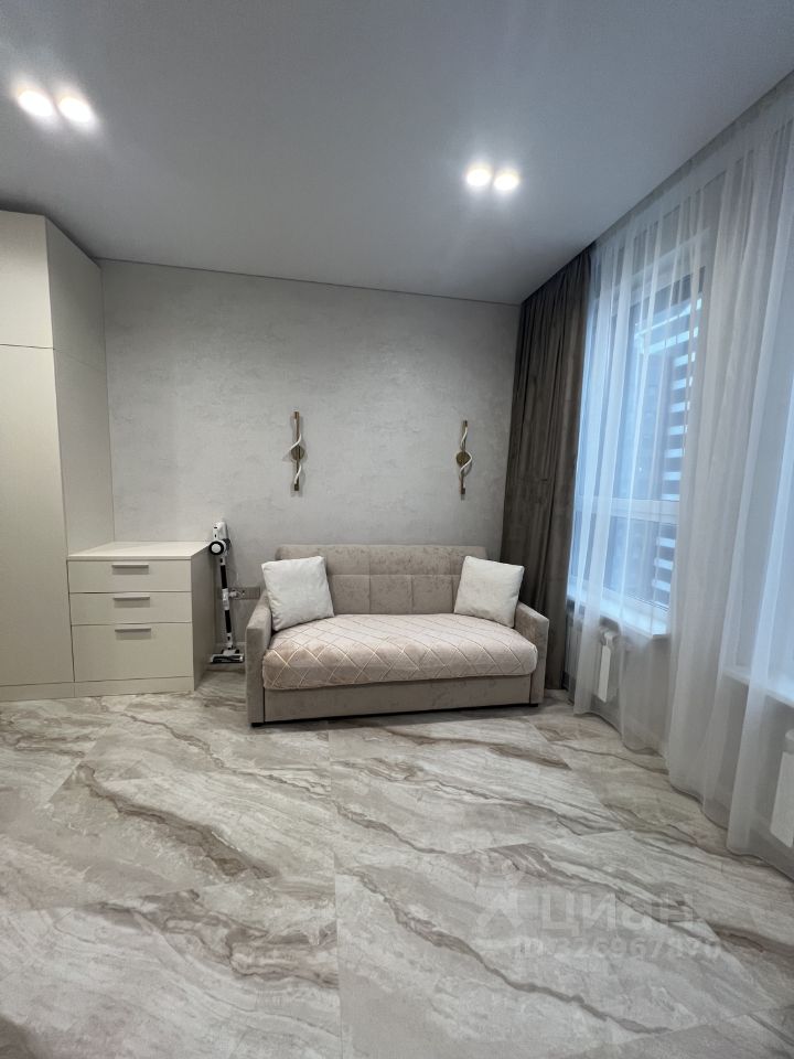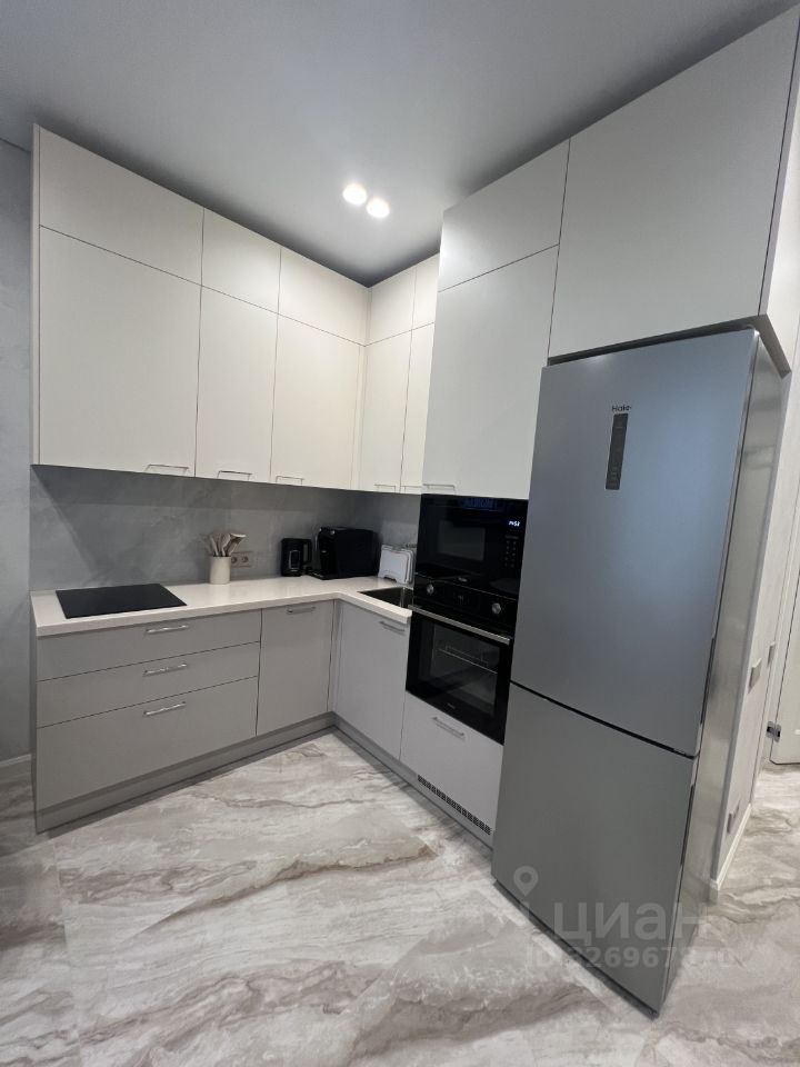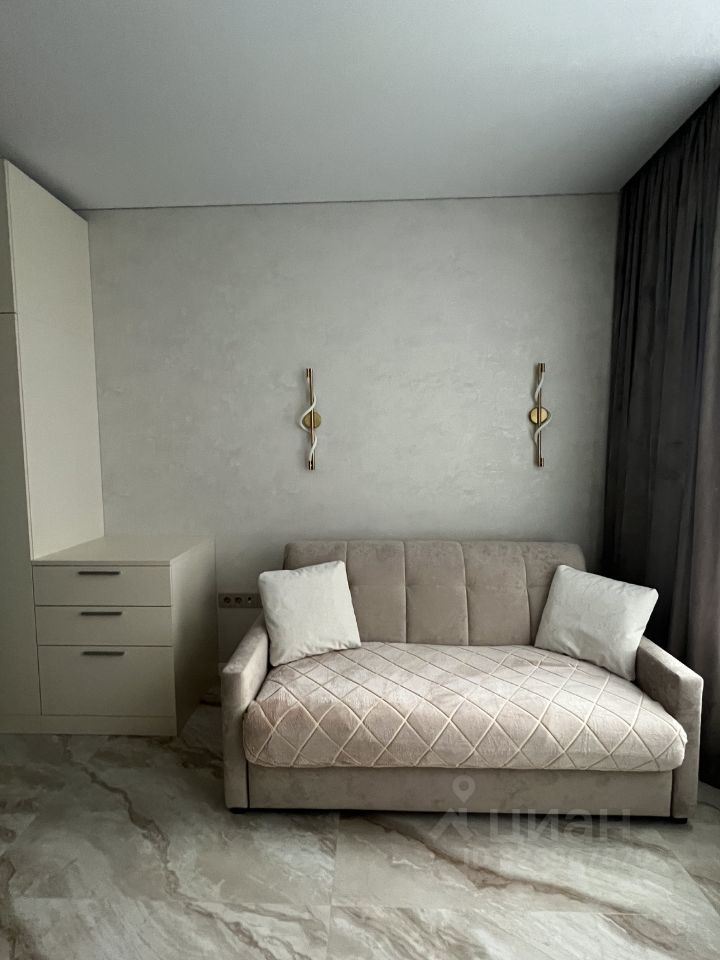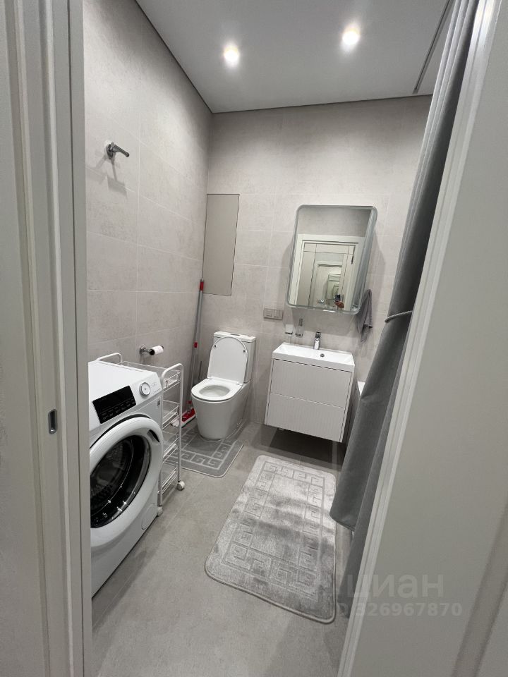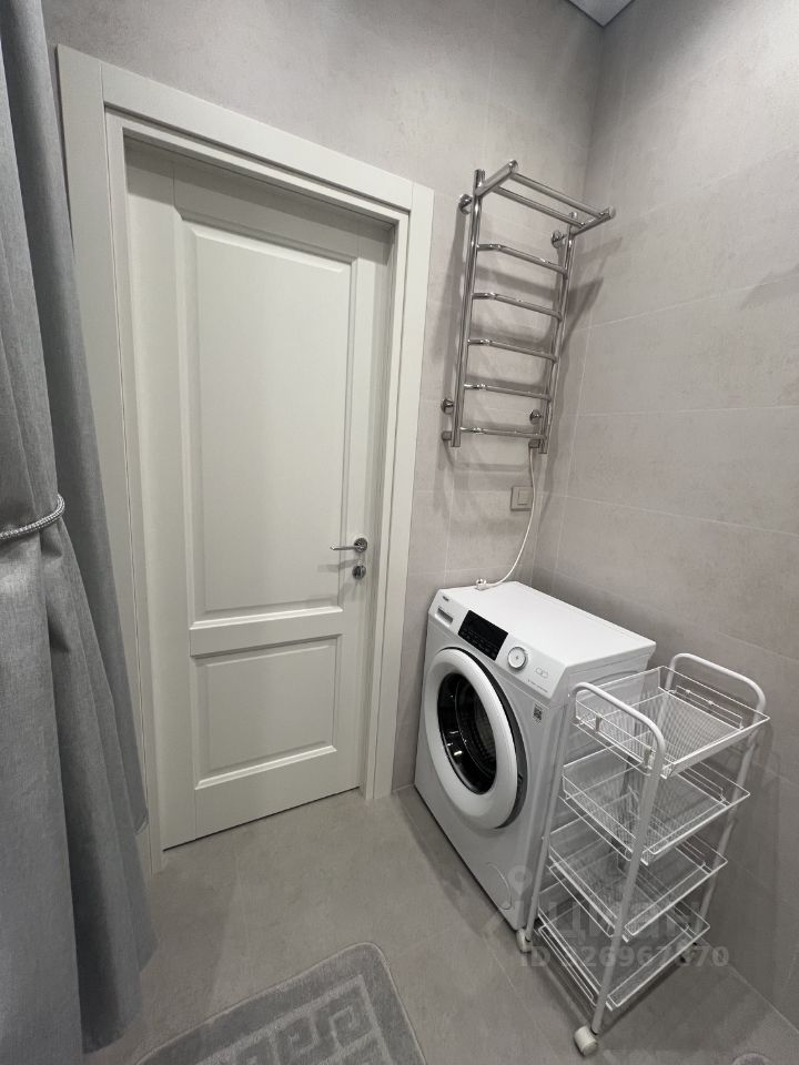 Сдаётся в аренду квартира студия площадью 26,9 кв. м О квартире Квартира новая, после качественного ремонта — в ней ещё никто не жил. Полностью готова к комфортному проживанию: всё необходимое уже есть. Кухня: гарнитур MR. Doors, бытовая техника Haier (холодильник, СВЧ печь, духовой шкаф, посудомоечная машина, варочная панель, вытяжка). Посуда и мелкая техника: полный комплект (тарелки, чашки, столовые приборы, кастрюли, сковородки и др.), электрочайник, кофемашина DeLonghi, фильтр для питьевой воды. Жилая зона: шкаф и комод MR. Doors, стол и стулья, телевизор Samsung с функцией Smart TV, диван аккордеон с бельевым коробом. Есть всё для комфортного сна (подушки, одеяло, наматрасник), а также ночные бра, подсветка штор, кондиционер. Хозяйственные принадлежности: сушка для белья, гладильная доска, утюг, пылесос. Связь и интернет: Wi Fi, установлены интернет розетки. Санузел: ванна и раковина из литьевого мрамора, подвесная тумба, зеркало с подсветкой, стиральная машина Haier, сантехника и аксессуары Hansgrohe, проточный водонагреватель Stiebel Eltron, электрический полотенцесушитель. Прихожая: шкаф с зеркалом MR. Doors, видеодомофон CAME (связь с консьержем), обувница. Электрооснащение: вся электрика — BTicino. О доме и территории Первый этаж отведён под коммерческие помещения. Территория огорожена и охраняется; есть подземный паркинг и кладовки. Вход по смарт картам. Входная группа: чистка для обуви, коворкинг, колясочная, гостевой санузел, вендинговые аппараты, консьерж сервис. Дополнительно: лаунж зона на кровле (на крыше).