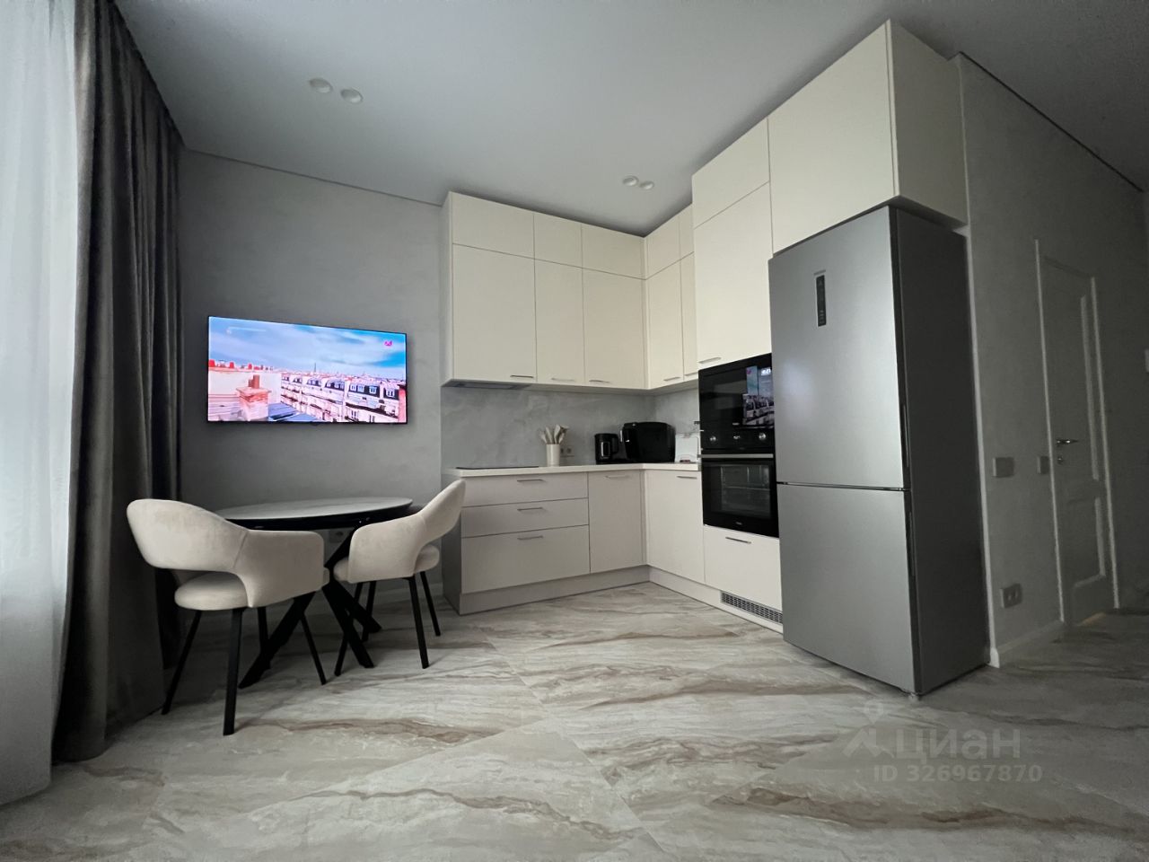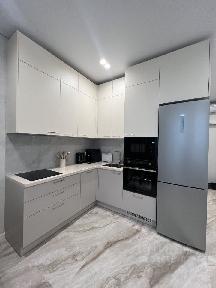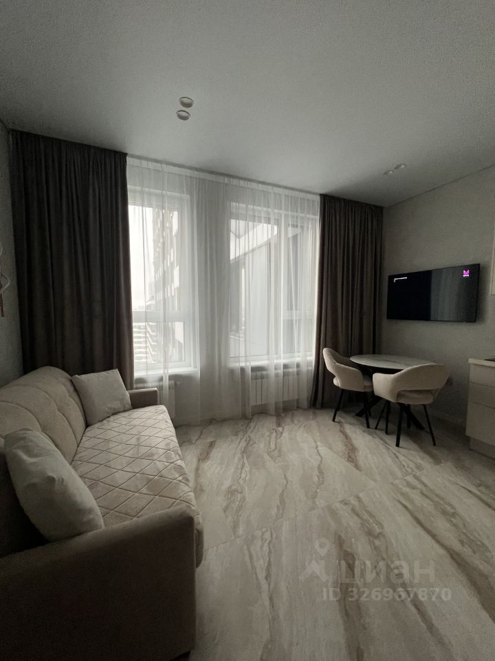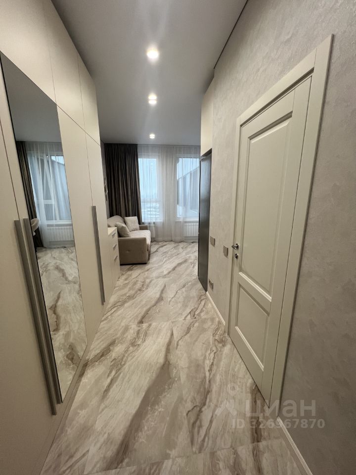Сдаётся в аренду квартира студия площадью 26,9 кв. м О квартире Квартира новая, после качественного ремонта — в ней ещё никто не жил. Полностью готова к комфортному проживанию: всё необходимое уже есть. Кухня: гарнитур MR. Doors, бытовая техника Haier (холодильник, СВЧ печь, духовой шкаф, посудомоечная машина, варочная панель, вытяжка). Посуда и мелкая техника: полный комплект (тарелки, чашки, столовые приборы, кастрюли, сковородки и др.), электрочайник, кофемашина DeLonghi, фильтр для питьевой воды. Жилая зона: шкаф и комод MR. Doors, стол и стулья, телевизор Samsung с функцией Smart TV, диван аккордеон с бельевым коробом. Есть всё для комфортного сна (подушки, одеяло, наматрасник), а также ночные бра, подсветка штор, кондиционер. Хозяйственные принадлежности: сушка для белья, гладильная доска, утюг, пылесос. Связь и интернет: Wi Fi, установлены интернет розетки. Санузел: ванна и раковина из литьевого мрамора, подвесная тумба, зеркало с подсветкой, стиральная машина Haier, сантехника и аксессуары Hansgrohe, проточный водонагреватель Stiebel Eltron, электрический полотенцесушитель. Прихожая: шкаф с зеркалом MR. Doors, видеодомофон CAME (связь с консьержем), обувница. Электрооснащение: вся электрика — BTicino. О доме и территории Первый этаж отведён под коммерческие помещения. Территория огорожена и охраняется; есть подземный паркинг и кладовки. Вход по смарт картам. Входная группа: чистка для обуви, коворкинг, колясочная, гостевой санузел, вендинговые аппараты, консьерж сервис. Дополнительно: лаунж зона на кровле (на крыше).