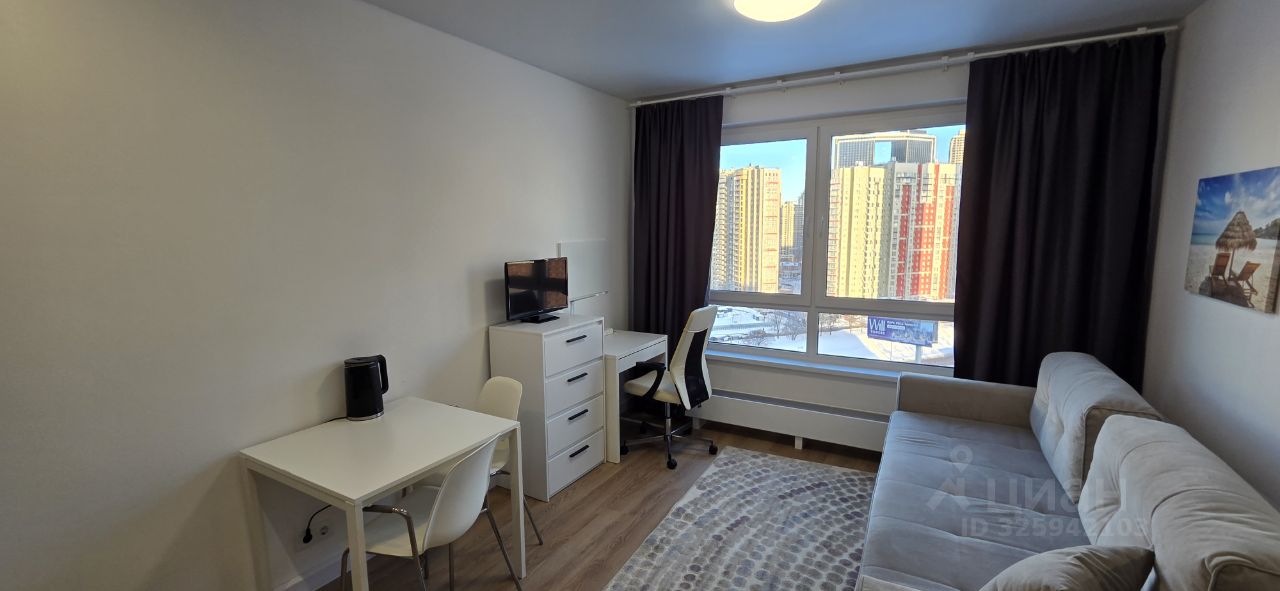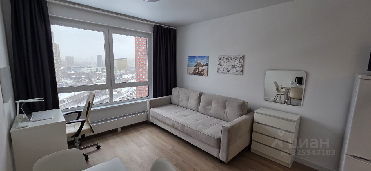 От собственника! В 2-х минутах ходьбы от станции метро "Аминьевская" сдается на длительный срок в аренду уютная, светлая, видовая, теплая однокомнатная квартира студия на ул. Очаковское шоссе д. 5 на 18 этаже 33-этажного дома с видовыми характеристиками. Полностью оснащенная (евроремонт, двухместный раскладывающийся диван ASKONA, SMART телевизор, рабочее место, интернет, встроенный кухонный гарнитур, комоды, двухкамерный холодильник, посуда, душевой уголок, стиральная машина, кондиционер, микроволновая печь, чайник, ковер и т.д.). Благоустроенный красивый и чистый двор, на первом этаже ПВЗ, продуктовые магазины, аптеки, кафе и рестораны. Фото реальные. Отдам предпочтение порядочным людям без животных, семейным парам. Аренда 64500 рублей + КУ, страховой депозит 100 %.